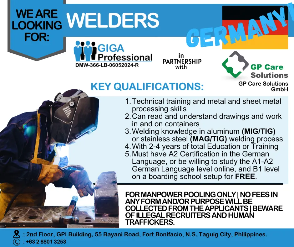 Are you looking for a promising career in the Metal Works industry in Germany? Join our community of skilled Welders today! Our agency is dedicated to providing excellent opportunities for career growth and development to all our applicants. Apply now and become part of our client's mission to provide quality metal works services. Don't miss out on this opportunity to take your career to the next level!